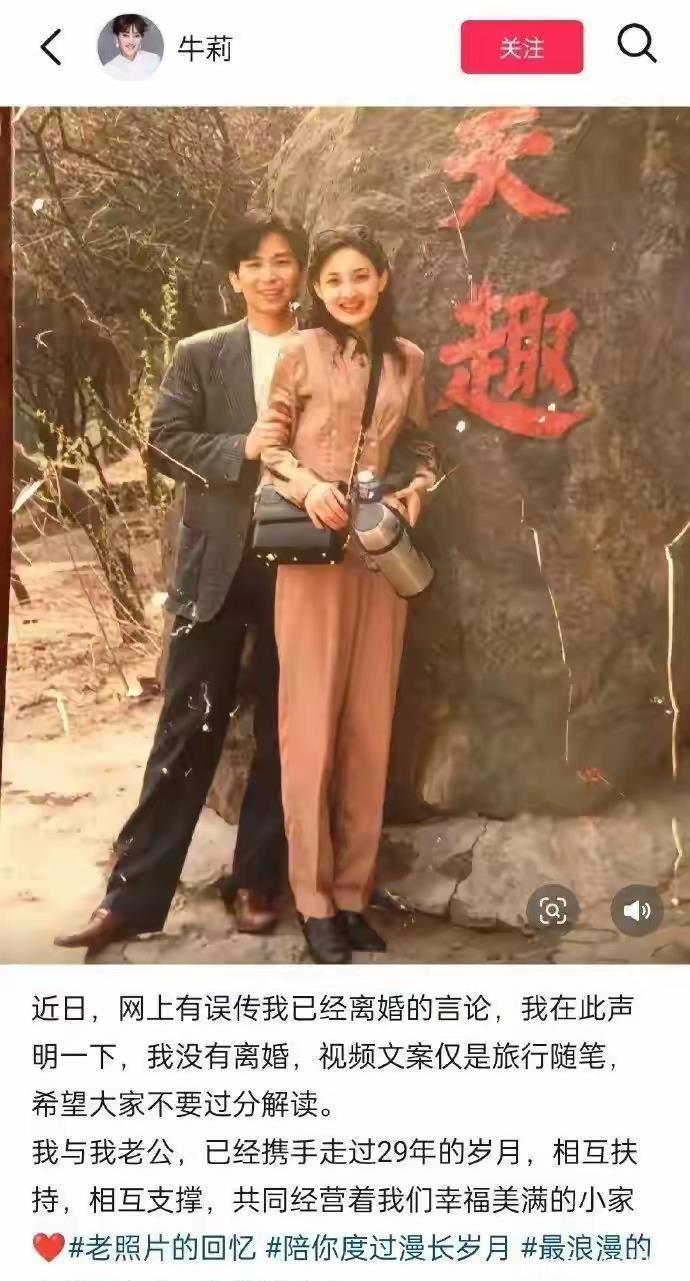 不过去年牛莉和老公刘亚东倒是传过一段时间的离婚传闻,事件发酵一段时间后,直爽的牛莉直接在自己的社交账号上辟谣没有离婚,还放出和老公年轻时候的合照。